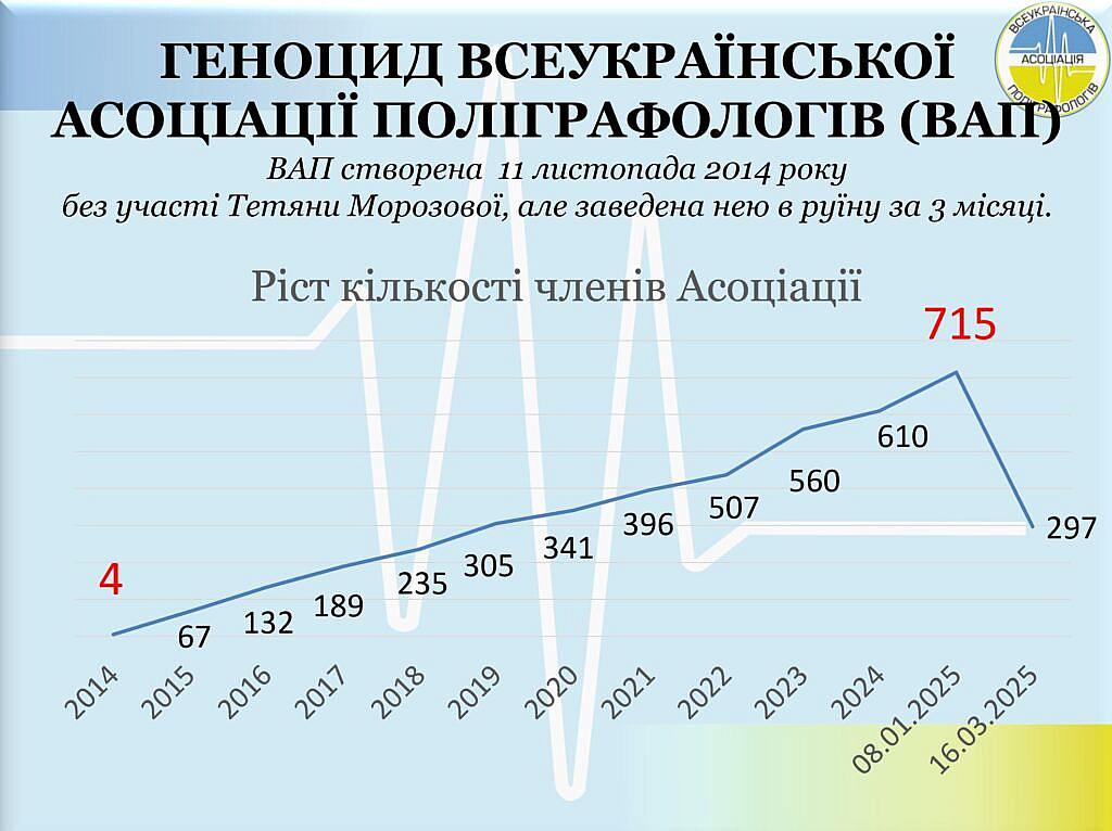 На початку 2025 року у Всеукраїнській асоціації поліграфологів (ВАП) вибухнув гучний конфлікт.