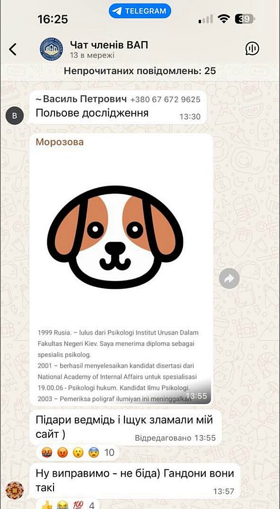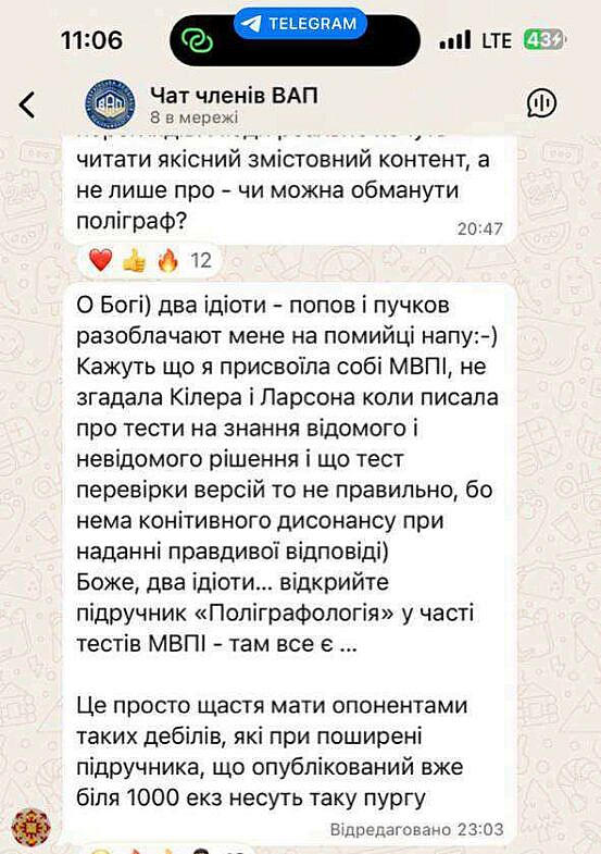 Морозова зневажає все керівництво Колегії поліграфологів України і йде вперед.