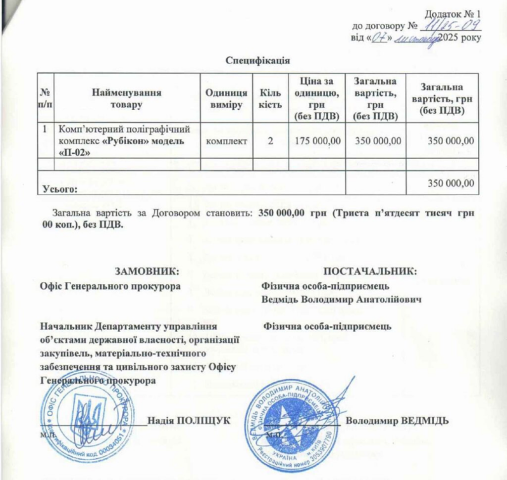 Національна асоціація поліграфологів України в особі ексклюзивного дилера поліграфів Рубікон ФОП Ведмідь Володимир Анатолійович здійснила чергове постачання сучасного обладнання для державних органів — до Офісу Генерального прокурора передано два нових комплекти поліграфів RUBICON.