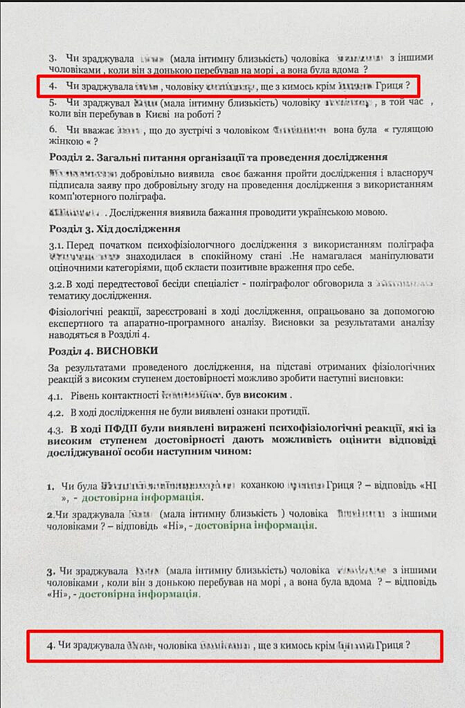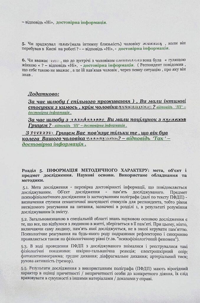 Версія досліджуваної, що вона взагалі ніколи не зраджувала. Як можна ставити питання “Чи зраджувала вона чоловіку ще з кимось, крім Гриця?”. Досліджувана ж не визнала зради з Грицем!