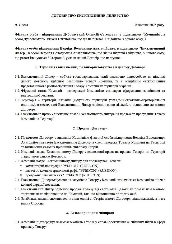Повний текст договору: Дилерський договір_ФОП Дубровський_ФОП Ведмідь 2025: